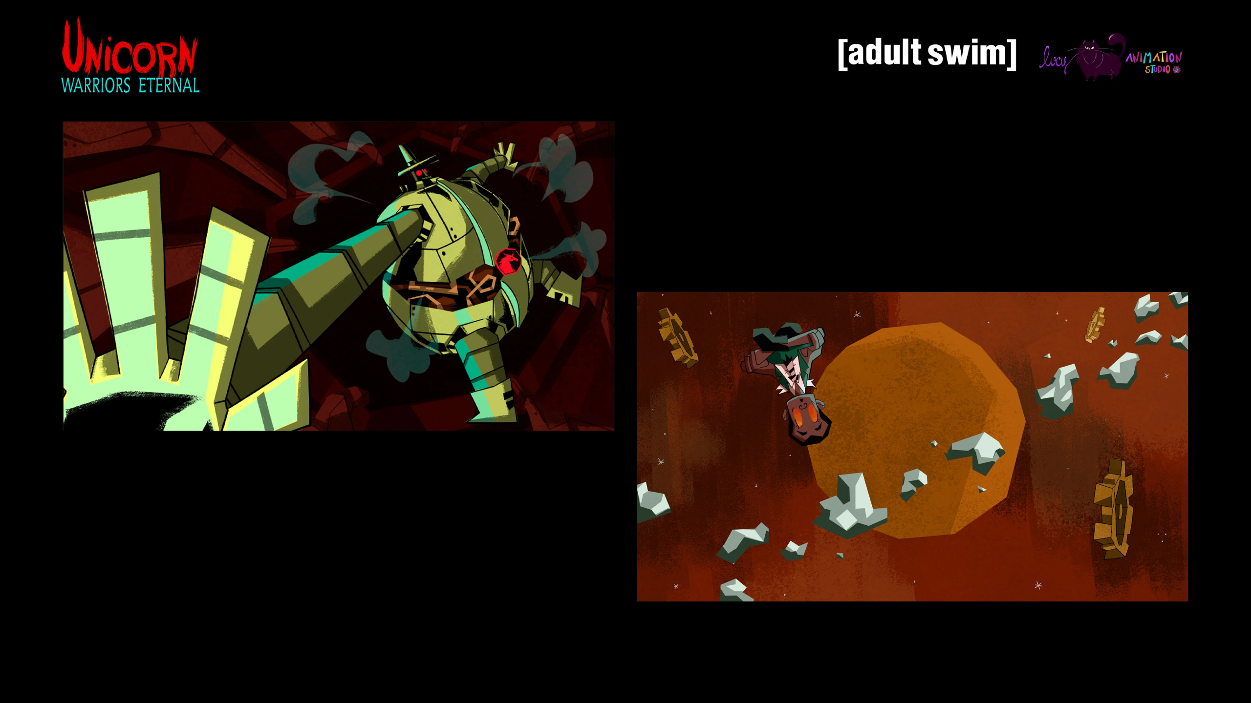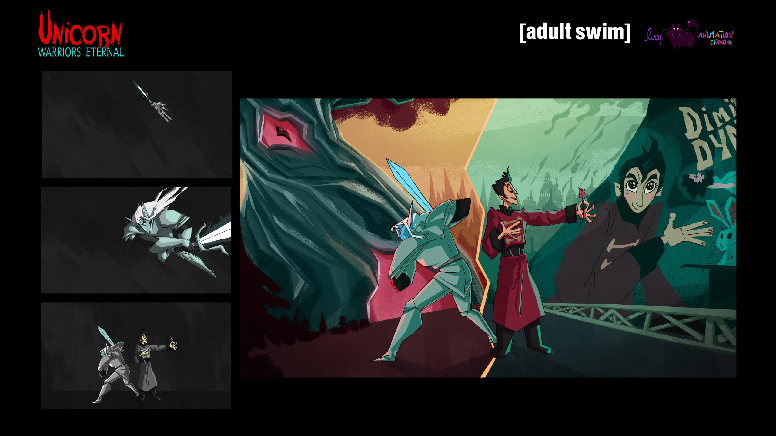 ID para Adult Swim sobre Unicorn Warriors Eternal, hecho con el equipo de Lucy Animation Studio.